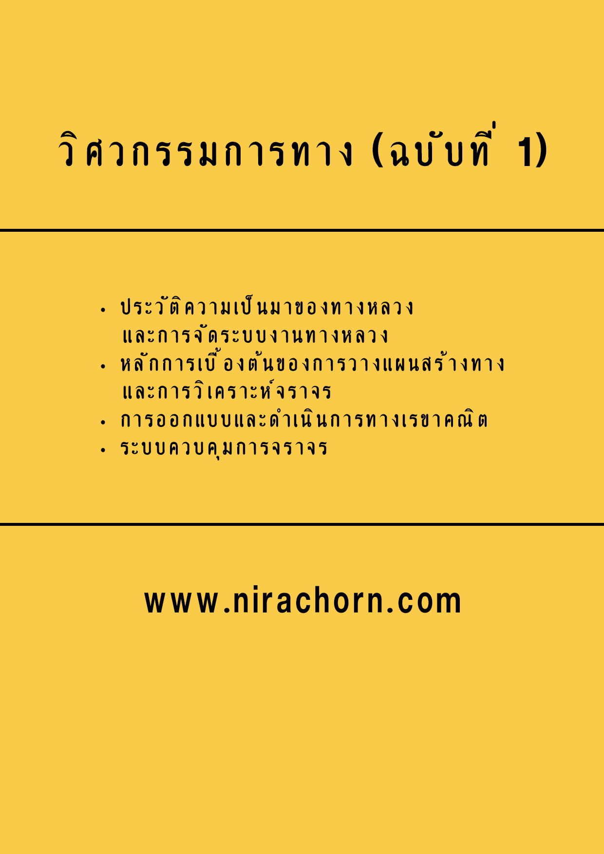 ประวัติความเป็นมาของทางหลวง การจัดระบบงานทางหลวง หลักการเบื้องต้นของการวางแผนสร้างทางและการวิเคราะห์การจราจร การออกแบบและดำเนินการทางเรขาคณิต เศรษฐศาสตร์การทาง การออกแบบผิวทางแบบยืดหยุ่นและผิวทางแบบแข็ง วัสดุการทาง การก่อสร้าง และการบำรุงรักษาทาง