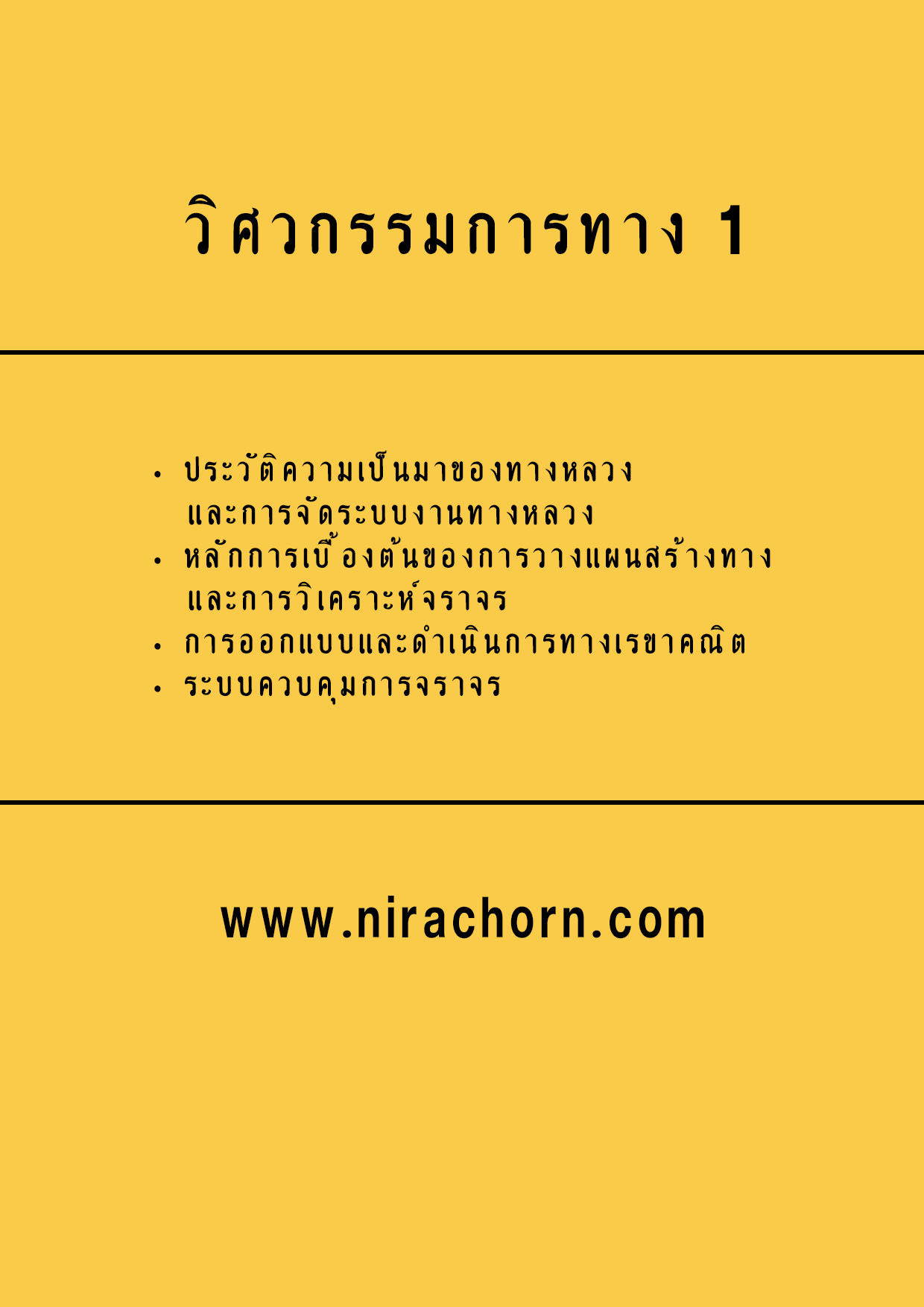 ประวัติความเป็นมาของทางหลวง การจัดระบบงานทางหลวง หลักการเบื้องต้นของการวางแผนสร้างทางและการวิเคราะห์การจราจร การออกแบบและดำเนินการทางเรขาคณิต เศรษฐศาสตร์การทาง การออกแบบผิวทางแบบยืดหยุ่นและผิวทางแบบแข็ง วัสดุการทาง การก่อสร้าง และการบำรุงรักษาทาง
